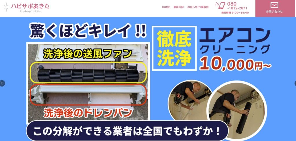 秋田エリア対応のエアコンクリーニング業者10社を比較一覧表にまとめましたので、ご参考ください。