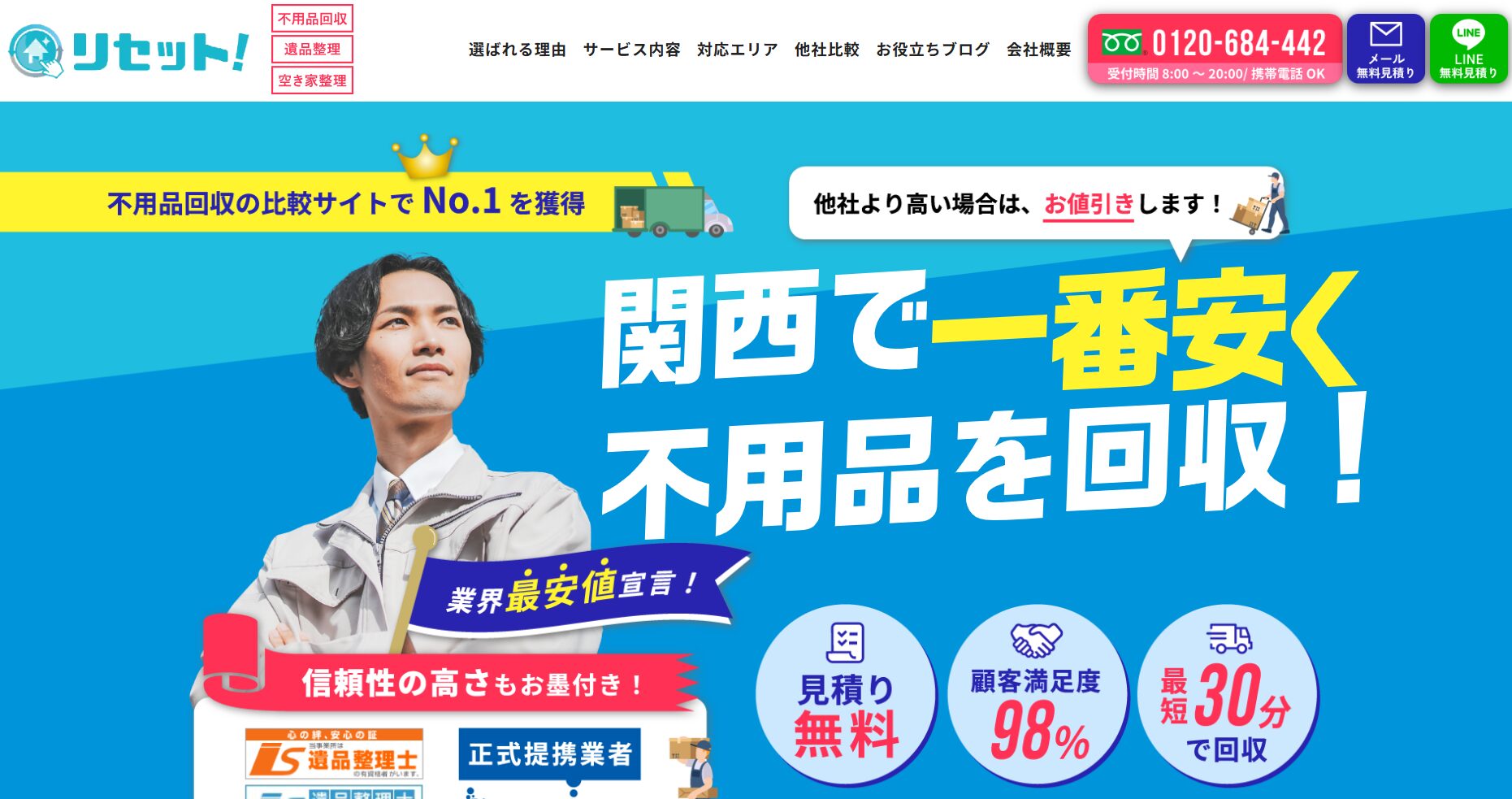 | 業者名 | クリスタ | 関西クリーンサービス | しあわせの遺品整理 | リセット | クリニーズ | ![]() おたすけマックス | おうち整理士 | ![]() 不用品回収のセーフティ | 不用品回収ゼロ | 清菱 |