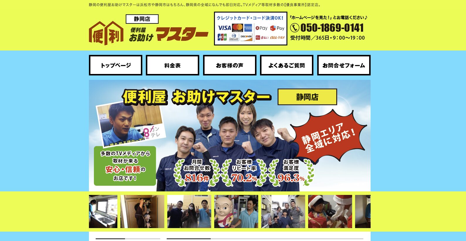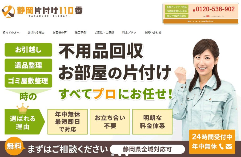 | 業者名 | クリスタ | お助けマスター | しあわせの遺品整理 | 静岡片付け110番 | ゴーゴーお片付け | 有限会社丸英 | 市栄産業株式会社 | 有限会社富士美装 | 環境衛生サービス | さとう産業 株式会社 |