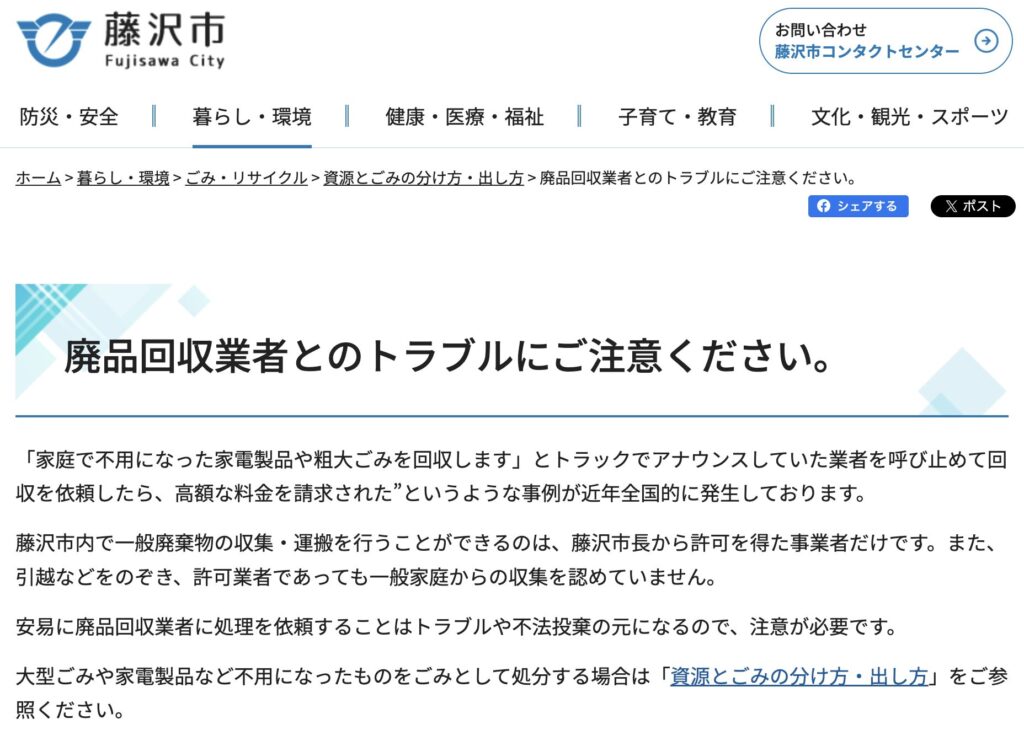 引用:廃品回収業者とのトラブルにご注意ください。|藤沢市公式