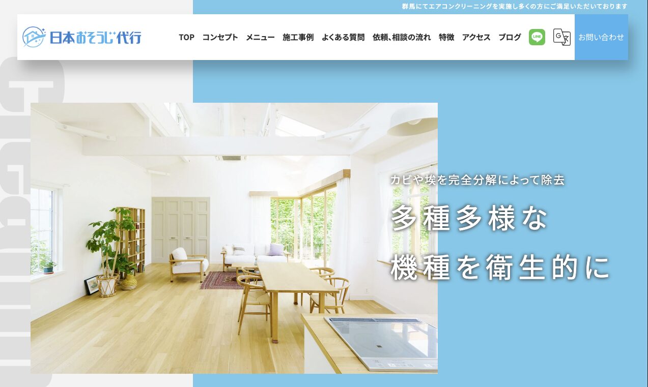 日本おそうじ代行は、全国展開するチェーン店の安心感と、地域オーナーによるきめ細やかな対応を両立させたサービスが特徴です。群馬エリアの店舗も、本部のしっかりとした研修を受けたプロが作業にあたるため、技術レベルが高く安定しています。