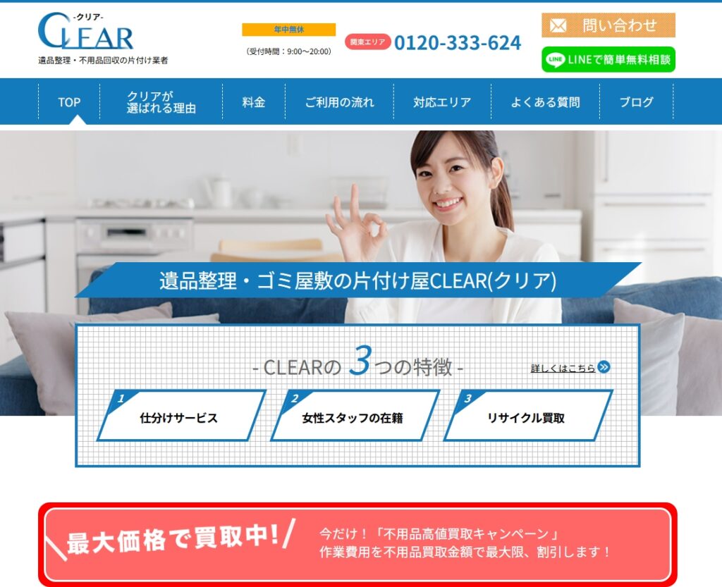 もし「どの業者に頼めばいいかわからない…」「まずは話だけ聞きたい」という場合は、当サイト「クリア」でも遺品整理のご相談を承っています。無料で訪問見積もりも対応していますので、お気軽にお問い合わせください。