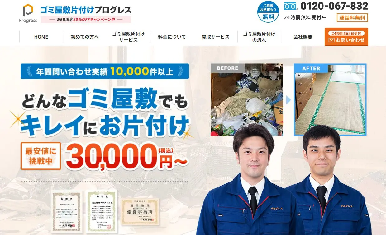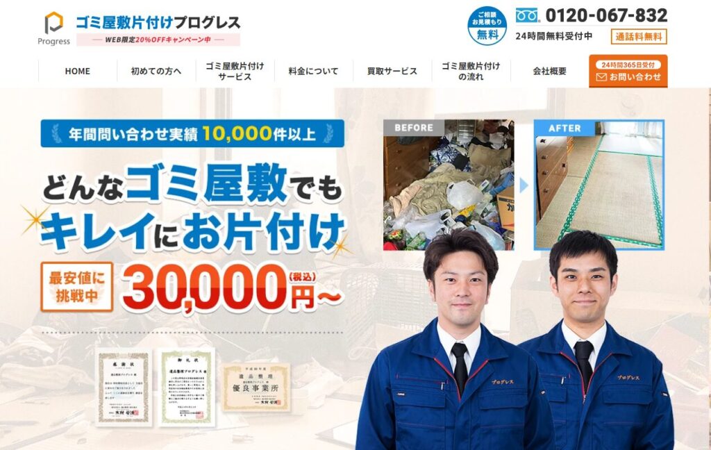 ゴミ屋敷片付けプログレスは神奈川県に対応する片付け業者です。創業10年以上を誇る安定した業者で、片付け作業専門店として実績豊富です。