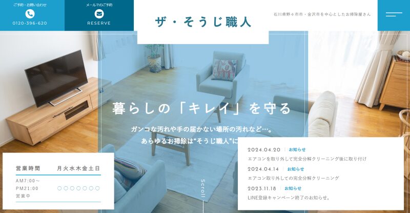 天然植物洗剤「天使の松」を中心に使用しているので、安心して依頼することができます。石川県内の交通費は無料で、富山県・福井県のエリア内の場合は注文総額税込20,000円以上で無料になります。