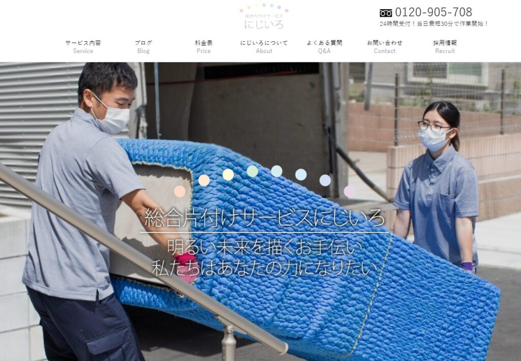 女性スタッフが在籍しているため、部屋に男性スタッフが入ることに抵抗のある女性でも安心して利用できる点が強みです。幅広いサービスを提供している業者や、女性スタッフの作業を希望する方におすすめします。