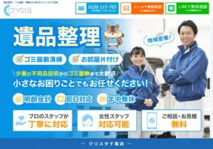 また、即日作業や深夜対応など、日時の指定が可能なため、急な片付けや引っ越しの際にも頼りになります。ユーザー目線で、相談から作業完了まで一貫して丁寧に対応するのがクリスタの強みです。家の中の片付けだけでなく、庭やエアコンなど、住まい全体の困りごとを解決したい方にも最適な業者です。