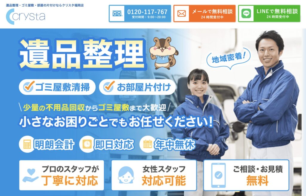 北九州市のおすすめ不用品回収業者をご紹介してきました。魅力的な業者が多く、正直どれにしようか迷ってしまった方も多いと思います。 もし迷ってしまったら「Crysta(クリスタ)」が最もおすすめです。