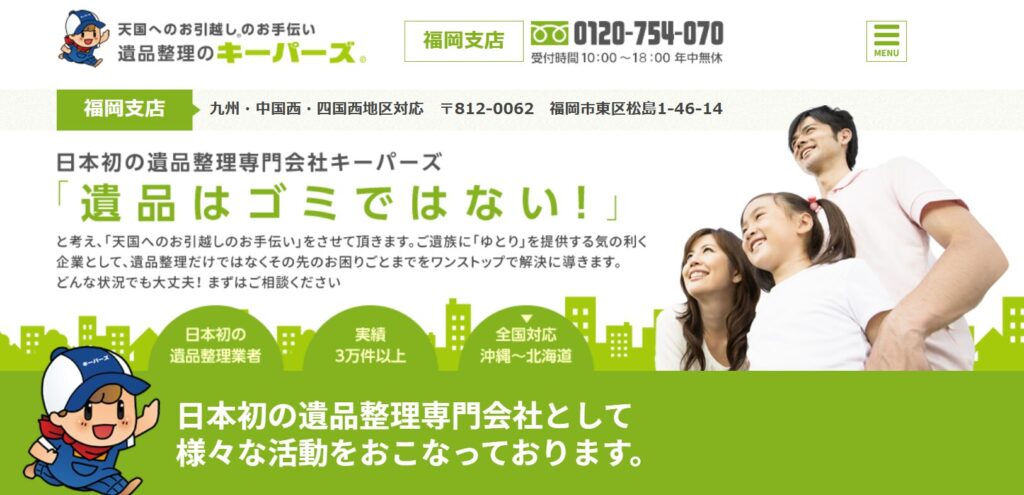 業者名CLEAR(クリア) しあわせの遺品整理友心まごころサービス 福岡片付け110番クリーンサービス九州 遺品整理のキーパーズ福岡遺品整理・特殊センター 株式会社フクナン開発 有限会社ヨシダクリーンシステム有限会社荒巻商店
