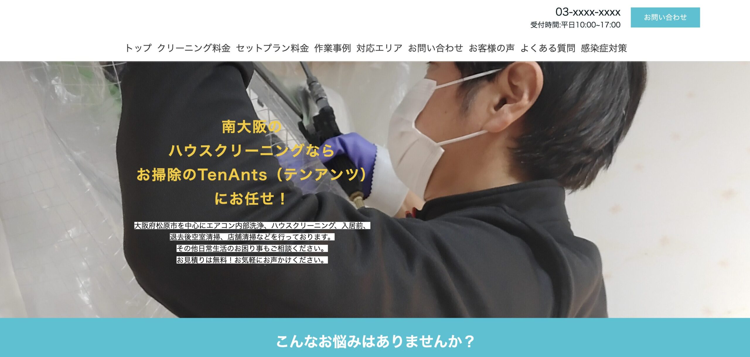 テンアンツは、大阪府松原市を中心にエアコンクリーニング・ハウスクリーニングなどサービスを提供しています。1番人気のクリーニングメニューは、エアコンクリーニングです。専用の高圧洗浄機を使用して分解洗浄しております。