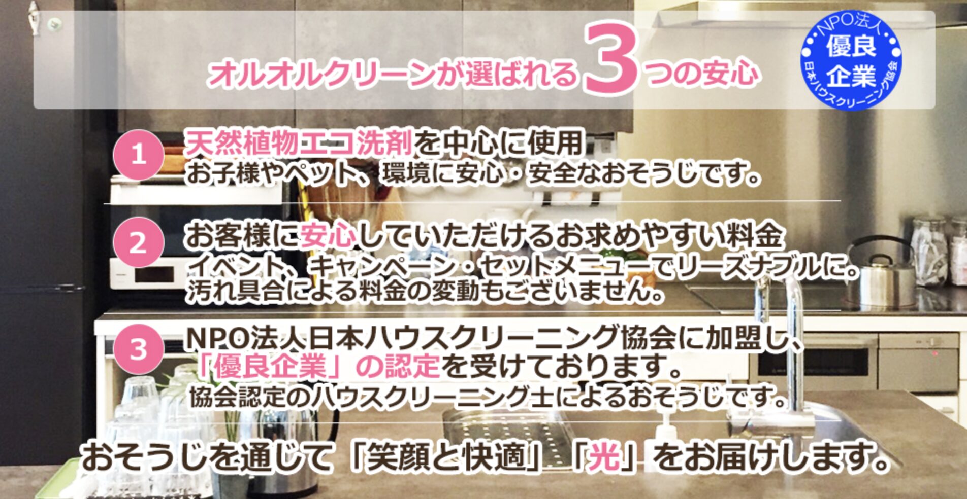 | おすすめ TOP3 | 1.ユアマイスター | 2.カジタク | 3.おそうじ本舗 |