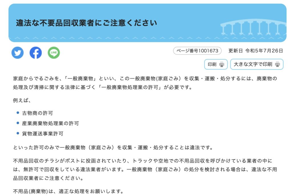 引用:違法な不要品回収業者にご注意ください|守山市
