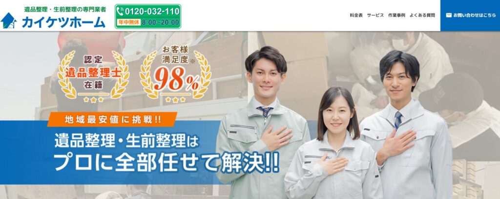 初めて遺品整理を依頼する方や、女性スタッフによるきめ細やかな対応を希望する方におすすめの業者です。