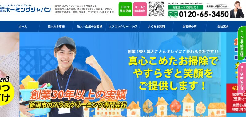 | 業者名 | ユアマイスター | おそうじ本舗 | カジタク | おそうじ革命 | ダスキン | ![]() ホーミングジャパン 新潟本店 | ハウスクリーニング110番 | くらしのマーケット | ワンストップダイレクト | おそうじ工房新潟 |