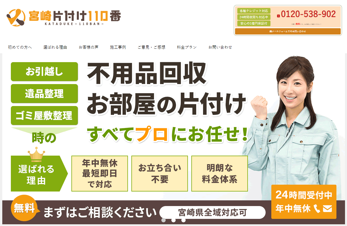 おすすめTOP3 1.Crysta(クリスタ) 2.宮崎片付け110番 3.お助けマスター