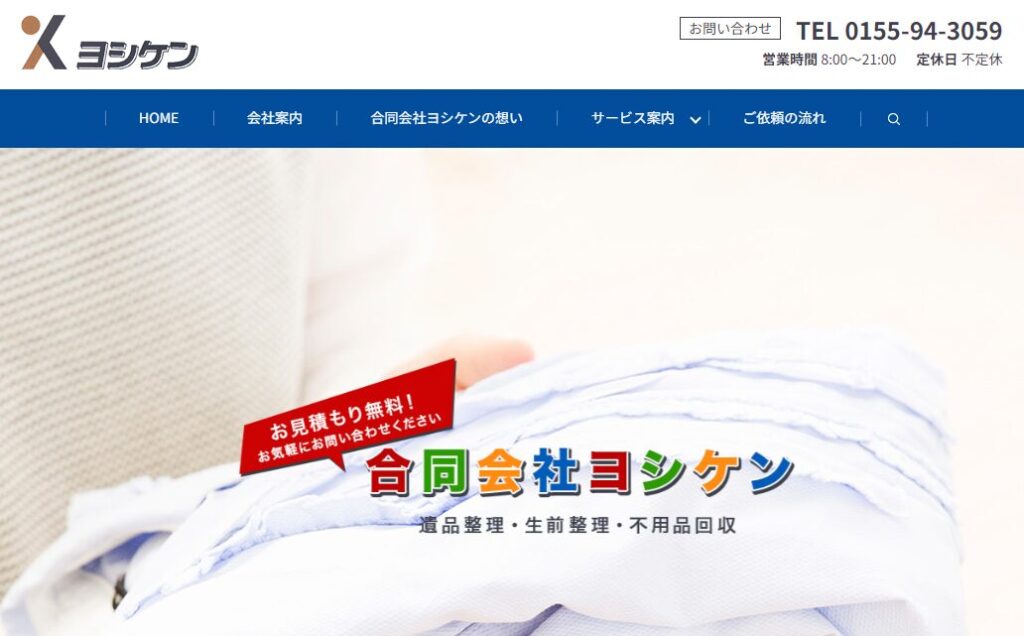 ヨシケンは、北海道帯広市を拠点に、遺品整理や生前整理、不用品回収など幅広いサービスを提供しています。地域密着型の業者として、地元の方々に寄り添った丁寧な対応が魅力の業者です。