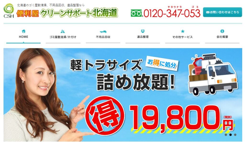 クリーンサポート北海道は、北海道全域でサービスを提供する業者です。対応サービスは多岐にわたり、ゴミ屋敷の清掃や不用品の回収に加えて、ハウスクリーニングやリフォームといった幅広いニーズに応えます。