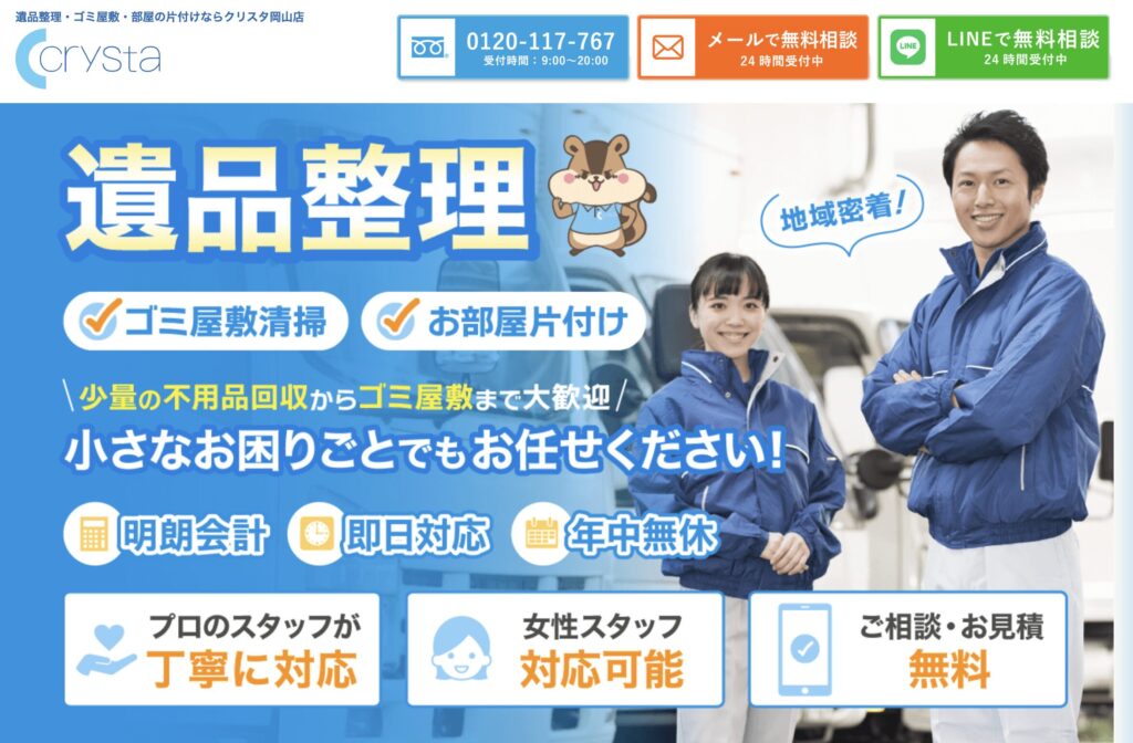 | おすすめTOP3 | 1.Crysta(クリスタ) | 2.片付け堂 | 3.岡山からっぽサービス |