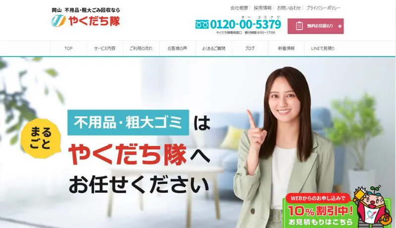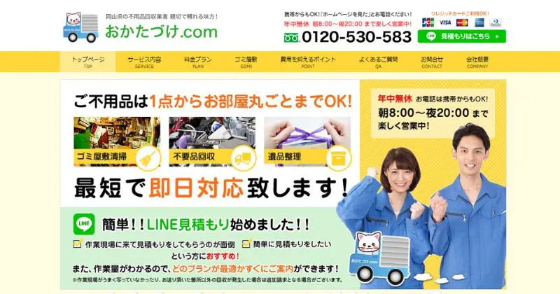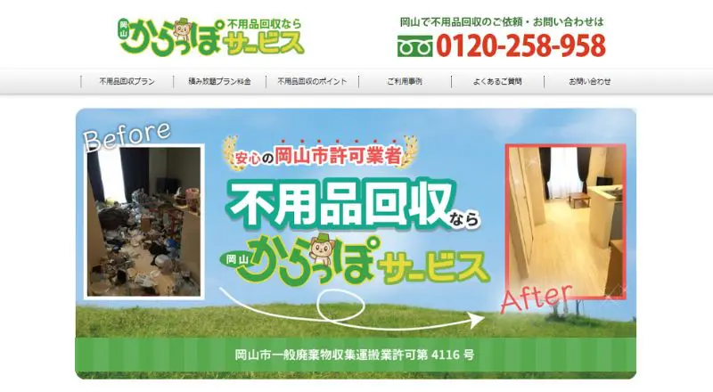 岡山県岡山市エリア対応の片付け業者10社を比較一覧表にまとめましたので、ご参考ください。