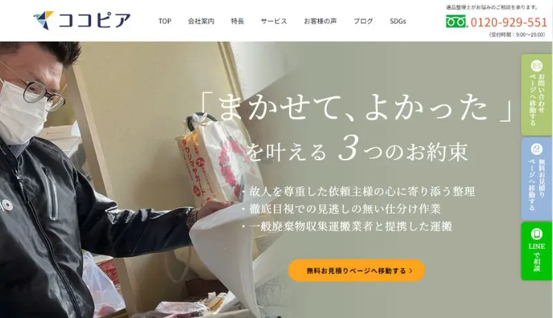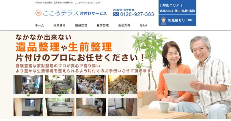 こころテラスは、遺品整理と生前整理に強い片付けサービスです。貴重品の探索や必要な物と要らない物の仕分けなども行い、家財の整理によく使われている業者になります。