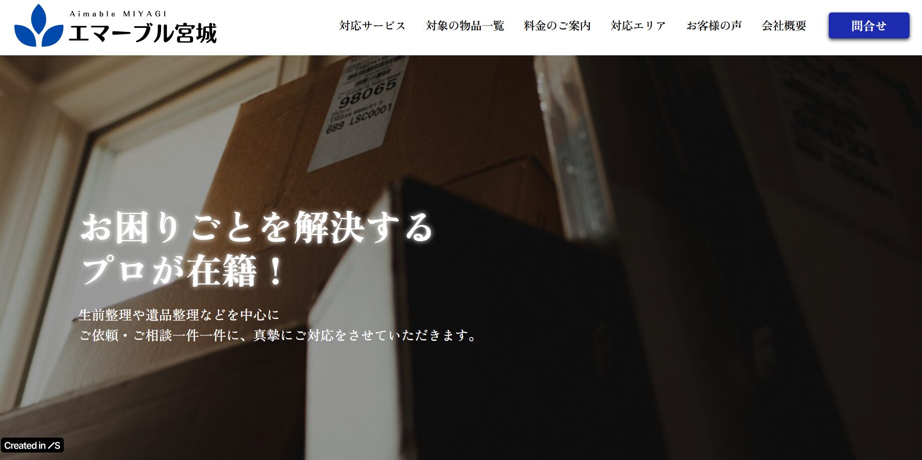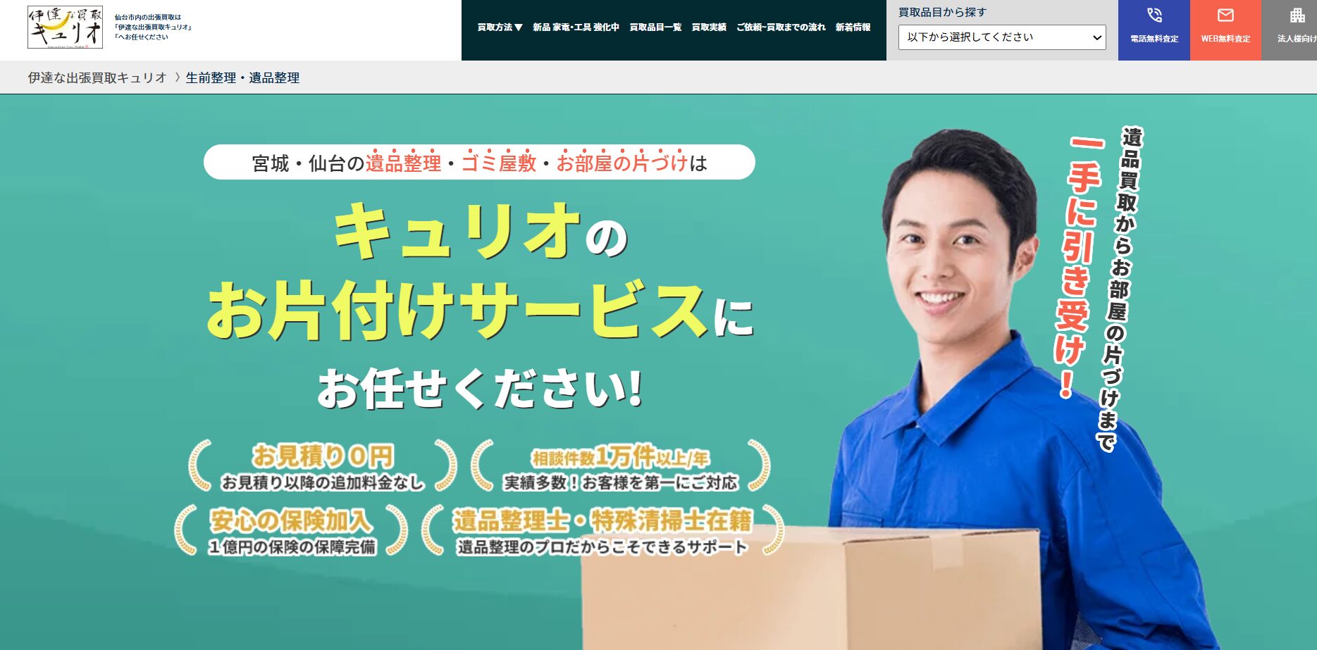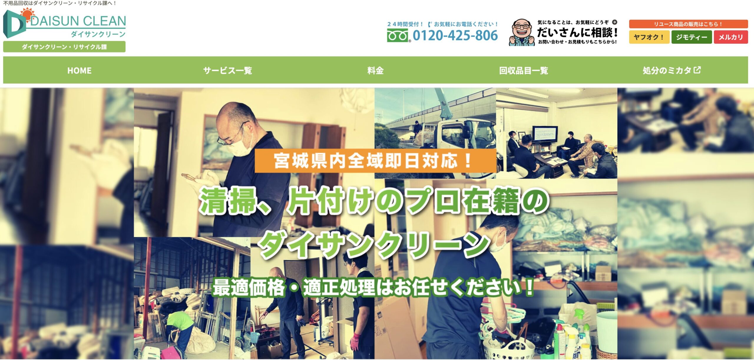 | 業者名 | ![]() Crysta(クリスタ) | ![]() ダイサンクリーン | 片付け侍 | しあわせの遺品整理 | ![]() 便利屋お助けマスター宮城店 | 宮城片付け110番 | 不用品回収ECO | ![]() イーライフクルー | エマーブル宮城 | キュリオ |