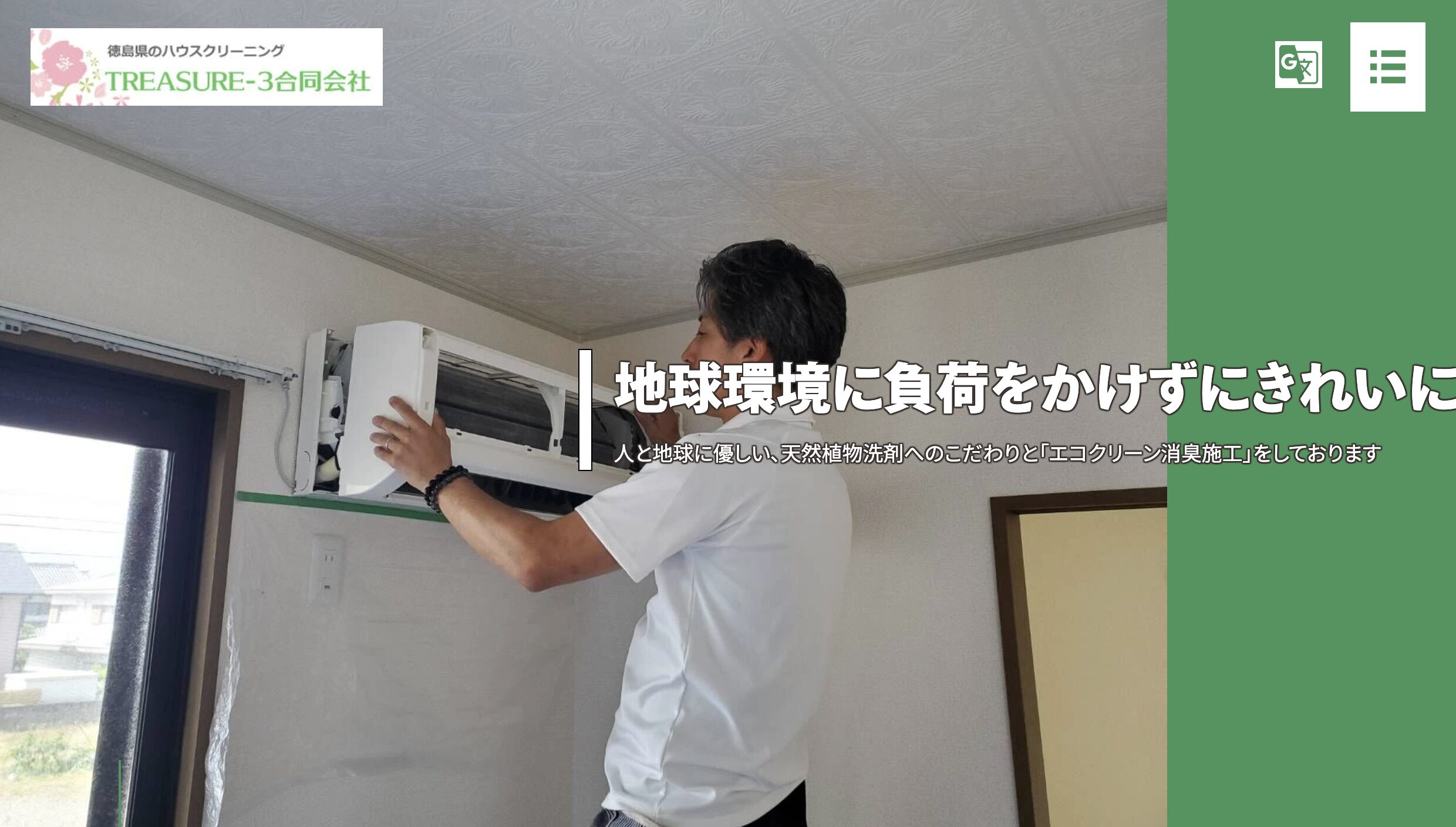 TREASURE-3は、住宅のトータルメンテナンスを手がける専門知識を活かしたエアコンクリーニングを提供しています。最大の独自性は、洗浄に使用する薬剤の選定にあり、高い安全性と洗浄力を両立させた天然酵素洗剤などを積極的に導入しています。