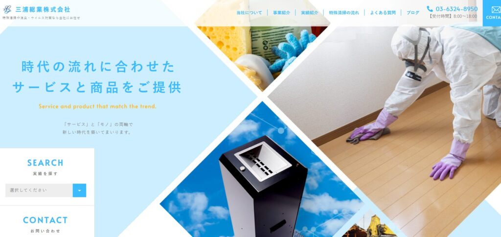 三浦総業は、関東一円でサービスをサービスを提供する業者です。孤独死や事故現場の清掃はもちろん、大量のゴミが溜まった部屋の片付け、消臭・除菌作業までトータルで対応しています。