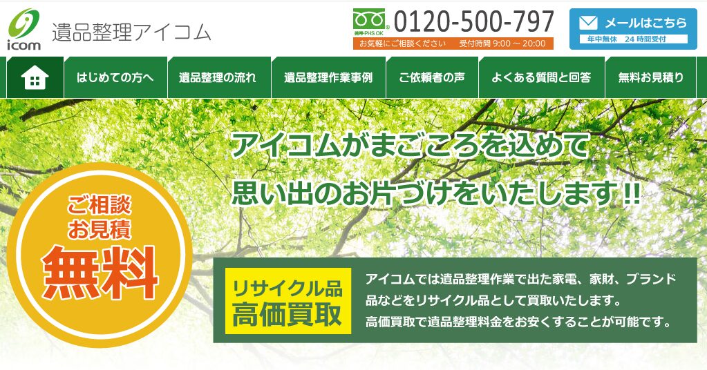 「形見として残しておきたい品」「通帳や印鑑など探してほしいもの」など利用者のニーズを丁寧にヒアリングをしながら作業を進めてくれます。特殊清掃と遺品整理を同時に依頼したい方におすすめの業者です。