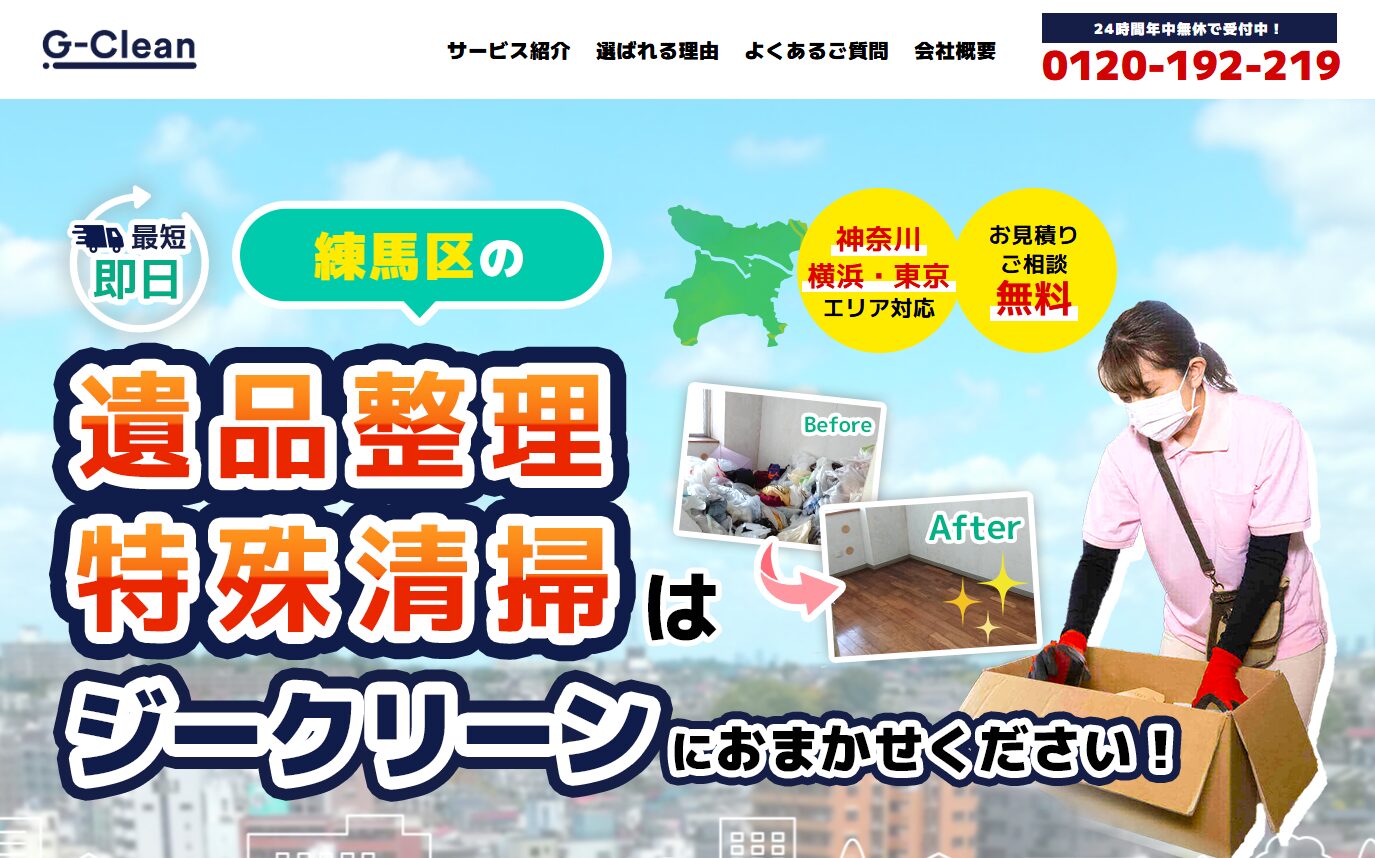 クリアは東京、神奈川、埼玉、千葉でサービスを提供する業者です。独自の仕分けサービスを提供している点が特徴です。特殊清掃を依頼される方の中には、「遺品と不用品が混ざっていて、どれを残せばいいかわからない」「片付ける時間がない」と悩まれる方も多くいます。