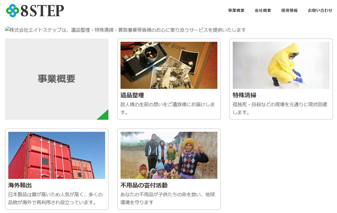 エイトステップは、宮城県全域でサービスを提供する業者です。孤独死や自殺などの現場にも対応可能で、清掃後には遺品整理やリフォームまで依頼できます。