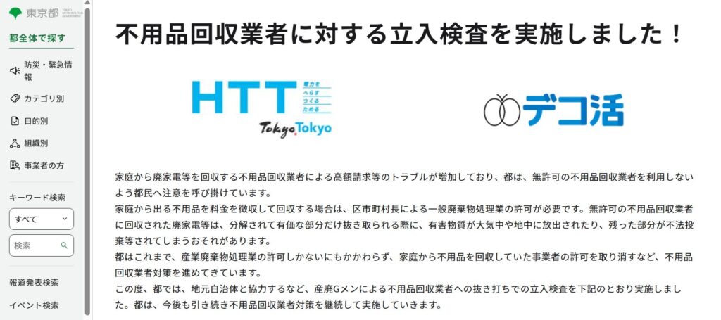(引用元:「不用品回収業者に対する立入検査を実施しました!」|東京都都庁総合HP