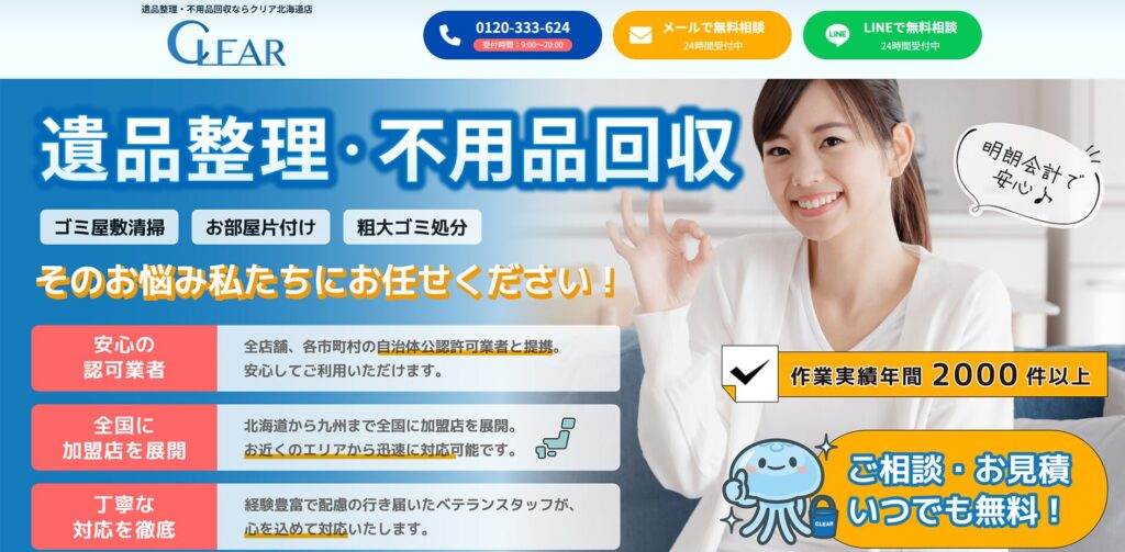 | おすすめTOP3 | 1.CLEAR(クリア) | 2.しあわせの遺品整理 | 3.北海道片付け110番 |
