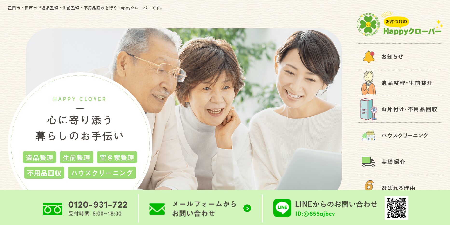 もし「どの業者に頼めばいいかわからない…」「まずは話だけ聞きたい」という場合は、当サイト「クリア」でも遺品整理のご相談を承っています。無料で訪問見積もりも対応していますので、お気軽にお問い合わせください。