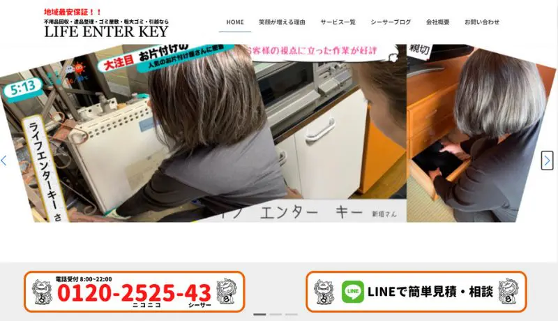10日という急な予定にもかかわらず、電話問い合わせや、現場見積もりでも親切に対応して頂きました。予算に合わせたプランも提案していただきました。作業当日では仕分けもしていただけて、小まめに必要か確認してもらえたので、ずっと探していた物も見つかりました。料金も見積もり内でしっかりと終わらせてくれました。