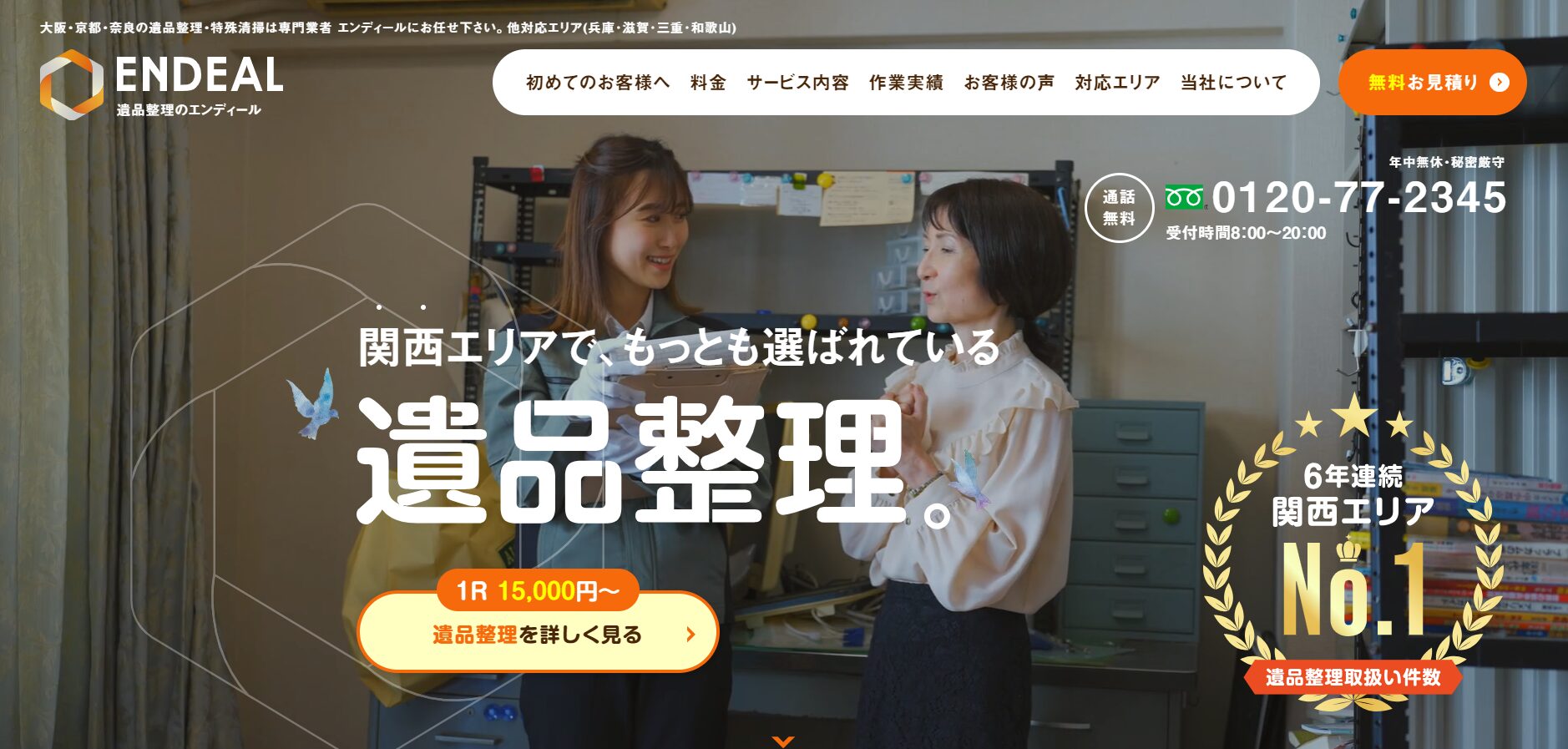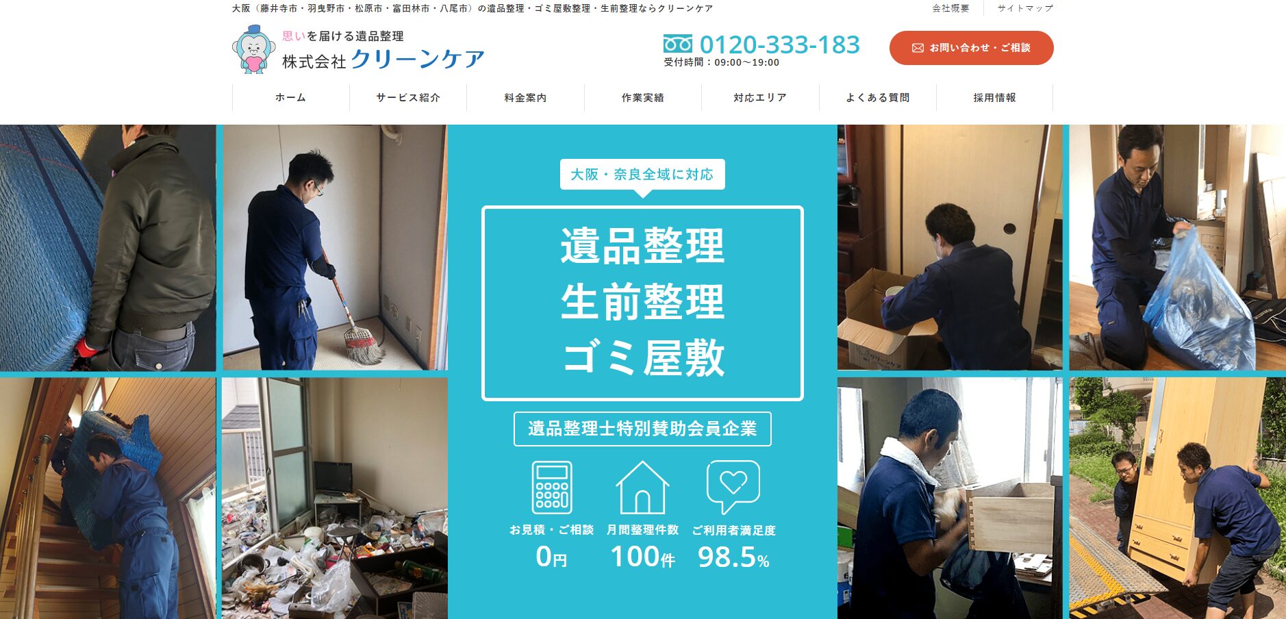 | 業者名 | CLEAR(クリア) | クリーンケア | ![]() おうち整理士 | エンディール | ![]() 関西プロスタッフ | 関西遺品整理サービス | 福家 | 源開発㈱ | ㈱八尾クリーンセンター | ㈲中央エコロジーサービス |